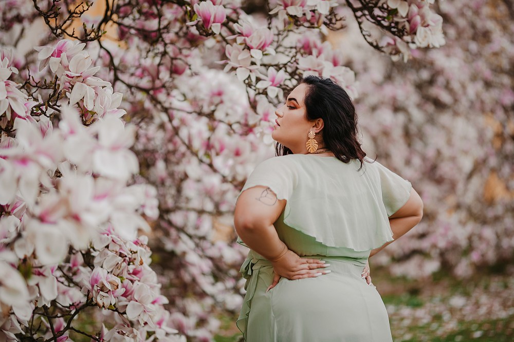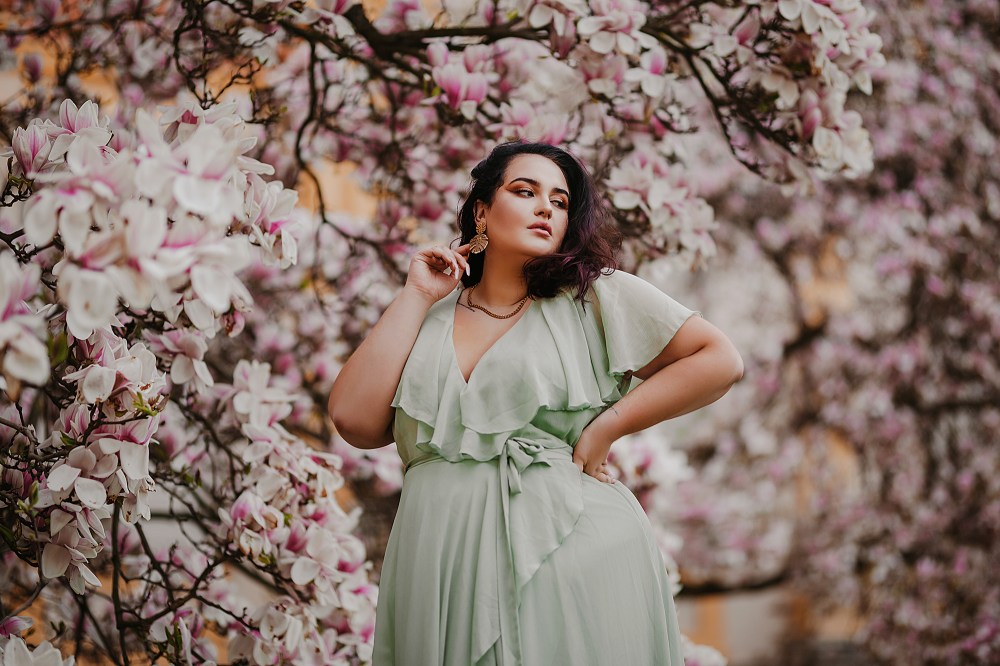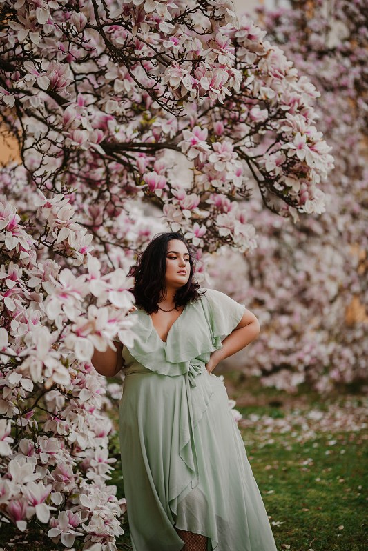 Uwielbiam współpracę z Patrycją! To była bodajże nasza druga czy trzecia sesja, ale chyba moja ulubiona. Napisała do mnie natychmiast, gdy tylko ogłosiłam się, że szukam kogoś na ASAP do zdjęć przy pięknych magnoliach. Takie zdecydowane modelki to skarb w obecnych czasach :) Dosyć stresowałam się tymi zdjęciami, bo nie miałam kiedy sprawdzić miejsca (widziałam je tylko na zdjęciach), dostałam też ostrzeżenie przed niesympatycznymi ochroniarzami, którzy ganiają stamtąd fotografujących ludzi. Jestem osobą, która nie ma problemu z bezpośrednim starciem, o ile mam rację :D Gdy tylko wiem, że łamię jakieś zasady, od razu moja pewność siebie spada i trudno jest mi się obronić przed ewentualnym atakiem. Dlatego takie sytuacje to zawsze dla mnie trochę stresu, choć nie aż tyle, by zrezygnować z pięknego miejsca!