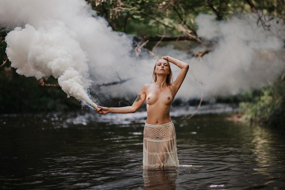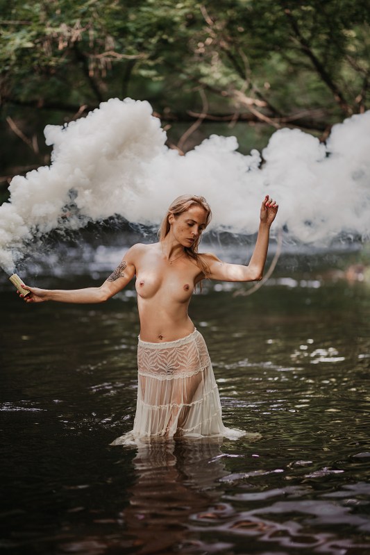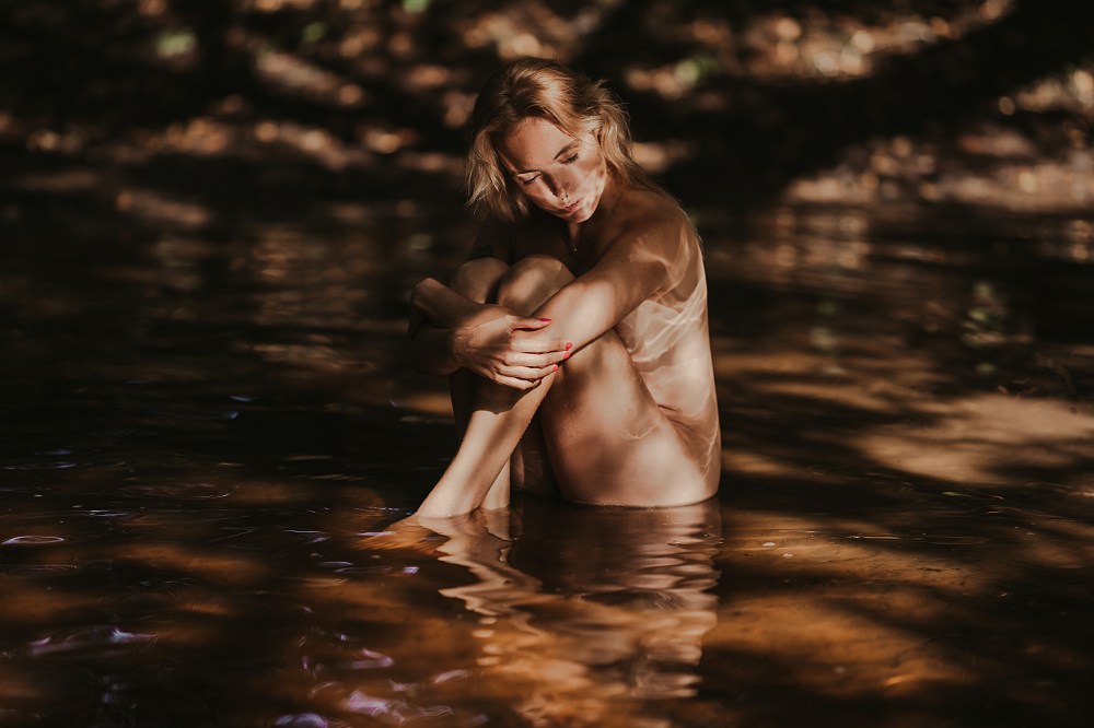 Ach cóż to była za sesja! Z Edytą umawiałyśmy się od dość dawna, ale widocznie musiał nadejść TEN dzień, żebyśmy mogły się spotkać i zabrać autem pod Warszawę, by popluskać się w wodzie :) Po 10 minutach z Edytą czułam się tak, jakbyśmy znały się od zawsze, więc to popołudnie było po prostu świetnie spędzonym czasem. Zrobiliśmy sobie grilla na plaży, jadłyśmy wege kiełbaski i w międzyczasie robiłyśmy zdjęcia. Miejsce miałam już ogarnięte wcześniej, daleko od głównej drogi, byłam więc pewna, że spokojnie możemy zrobić akty bez tłumu gapiów. Niestety zupełnie nie przemyślałam tego, że zatrzymaliśmy się przy głównym szlaku… kajakowym :D Dosłownie co 2 minuty przepływały rzeczką całe kajakowe wycieczki, a rodziny z dziećmi chętnie zatrzymywały się na odpoczynek na plaży, na której się rozłożyliśmy. Okazało się więc, że mimo idealnej pogody i wspaniałej motywacji do działania, nie możemy robić zdjęć, zwłaszcza że Edyta nie wzięła w zasadzie żadnych ubrań :D Z początku uważałyśmy to za całkiem zabawne, ale gdy zatrzymała się obok nas kilkuosobowa rodzina na prawie GODZINNY odpoczynek i piknik to już byłyśmy trochę złe. Światło uciekało, Edyta powoli marzła, ja chodziłam w kółko, a obok nas dzieci z czipsami i panie z papieroskami. Ostatnie zdjęcia zrobiłyśmy już w mega pośpiechu i trochę wkurzone, ale myślę, że cała sesja i tak bardzo fajnie nam się udała! Ja planuję już kolejną, bo Edyta jest naprawdę wyjątkową modelką i osobą!